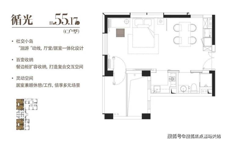 C|循光|建面约55.17 m²|一室一厅一厨一卫