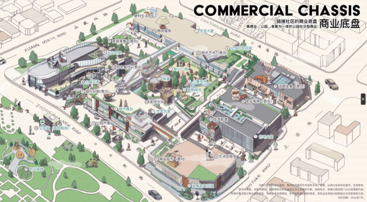 另外在社区的东南角和西侧,将通过街区设计与潮流商业的招募,打造类似上生新所般的时尚街区。内部预计将引入骑行、亲子、户外、宠物为主的社交型主题商业。