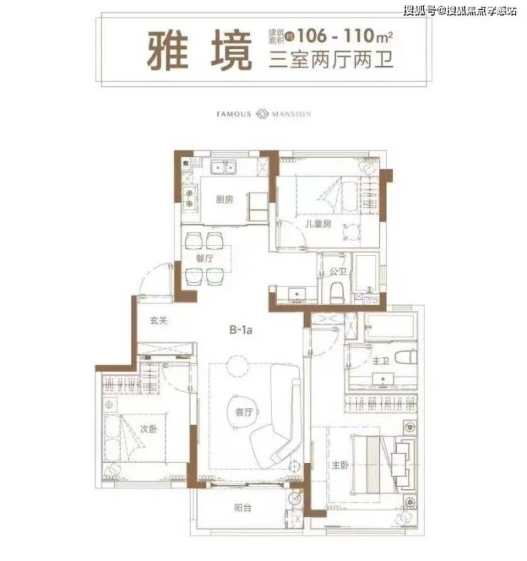 此外,项目还有建面约106-110㎡三房可供选择,户型图如下↓