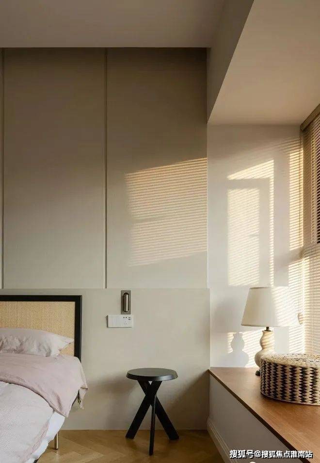 屋主希望主卧可以呈现出更加温柔、细腻的质感,设计师用木地板、编藤带来更多的温暖自然感;