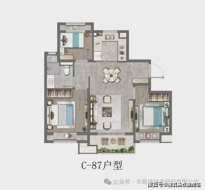 87平:三房二厅一卫