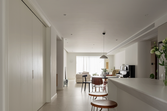 为了让全屋动线更加便捷,重新调整主卧和儿童的房门位置,减少狭窄的通道,让整体空间更加开放通透。