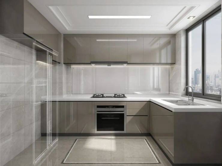 「古北悦公馆」建筑上采用简洁大气的现代风格,大面积玻璃与石材的拼接,外立面采用铝板+玻璃幕墙+局部干挂石材。