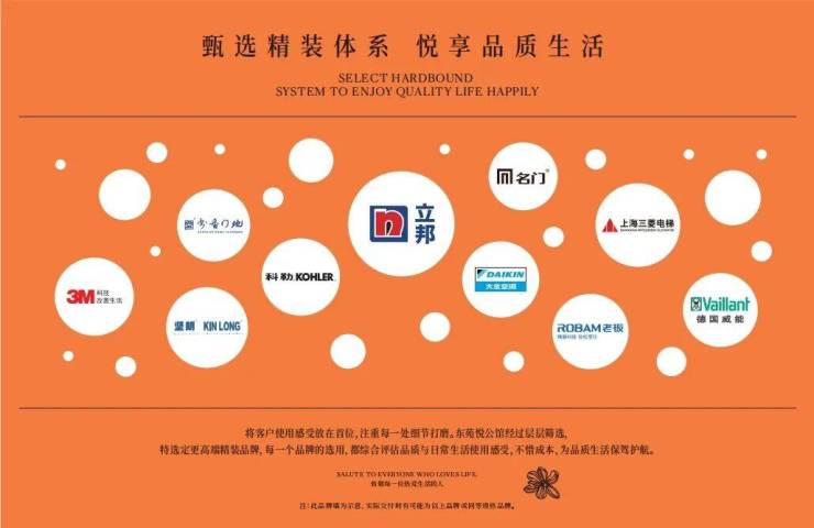 大金VRV中央空调、博士地暖、3M净水系统、科勒整体厨房(含成套高级厨房电器)、科勒高仪卫浴系列等。