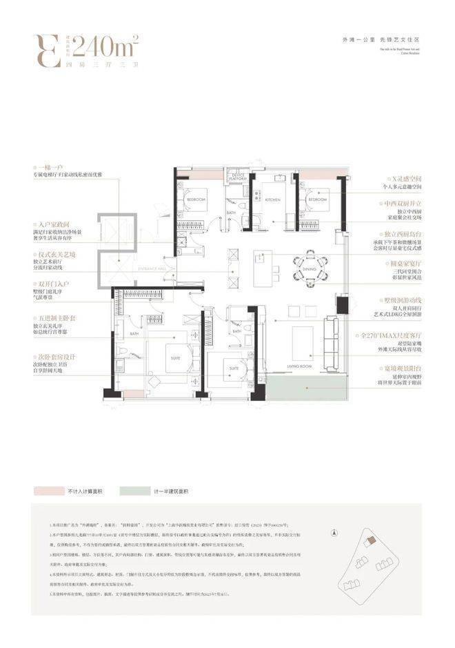 而在总价层面,外滩瑞府也是当下千载难逢的2200-2850万一步到位4房的机会。2024年至今,内环的四房供应起步面积段大约在180㎡,180㎡以上的四房供应占比55%,总价高昂,普遍在3500-4000万左右。