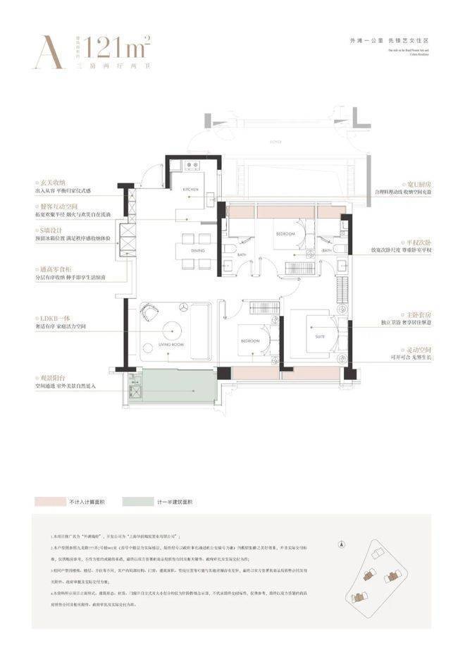 建面约121㎡三房