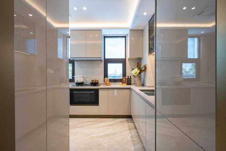 所有户型都是精装交付,装标约 8000 元 /㎡,甄选弗兰卡、唯宝、高仪等国际一线品牌。标配中央空调、地暖、新风三大件,搭配智能门锁、玄关收纳、厨房岛台等细节设计,兼顾实用性与品质感。交房后简单布置就能入住,省心又省力。