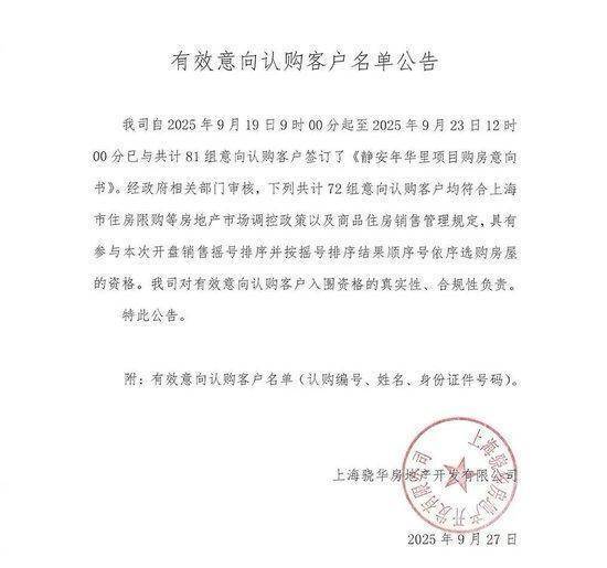 大华·静安年华售楼处电话:400-8787-740【预约☎于静安大宁板块的大华静安年华首次开盘,推出105套住宅,备案均价13万每平,共吸引到81组客户认筹,其中72组符合购房资格,有效认筹率68.6%。