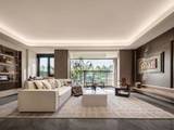 三楼整层为主卧套房,样板间设计了双开门入卧室,进入起居空间,样板间选择在这里放一些艺术装饰、设计吧台来彰显主人品味。