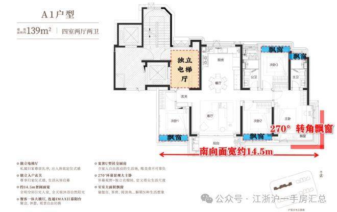 2)建面约139㎡4房,约14.5米大面宽全市少有!