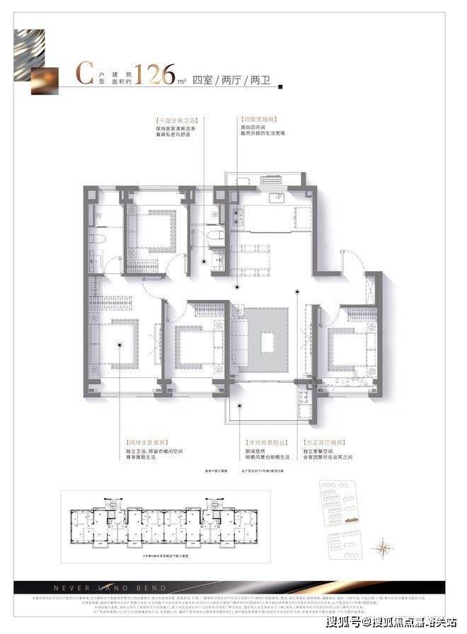 招商云澜湾售楼处预约电话:400-8855-420建面约126㎡真四房,进一步强化功能性,户型方正,四开间朝南,南北通透,南向卧室均带有大飘窗设计,拓宽了室内景观视野的同时,增加了实际空间使用率,有效避免面积浪费。