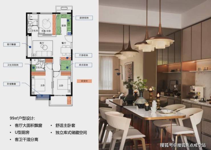 匠心雕琢79㎡—99㎡的精致户型,每一处设计都是对细节的考究和执着。大面积飘窗、宽景阳台,最大限度扩大采光面积及景观视野。