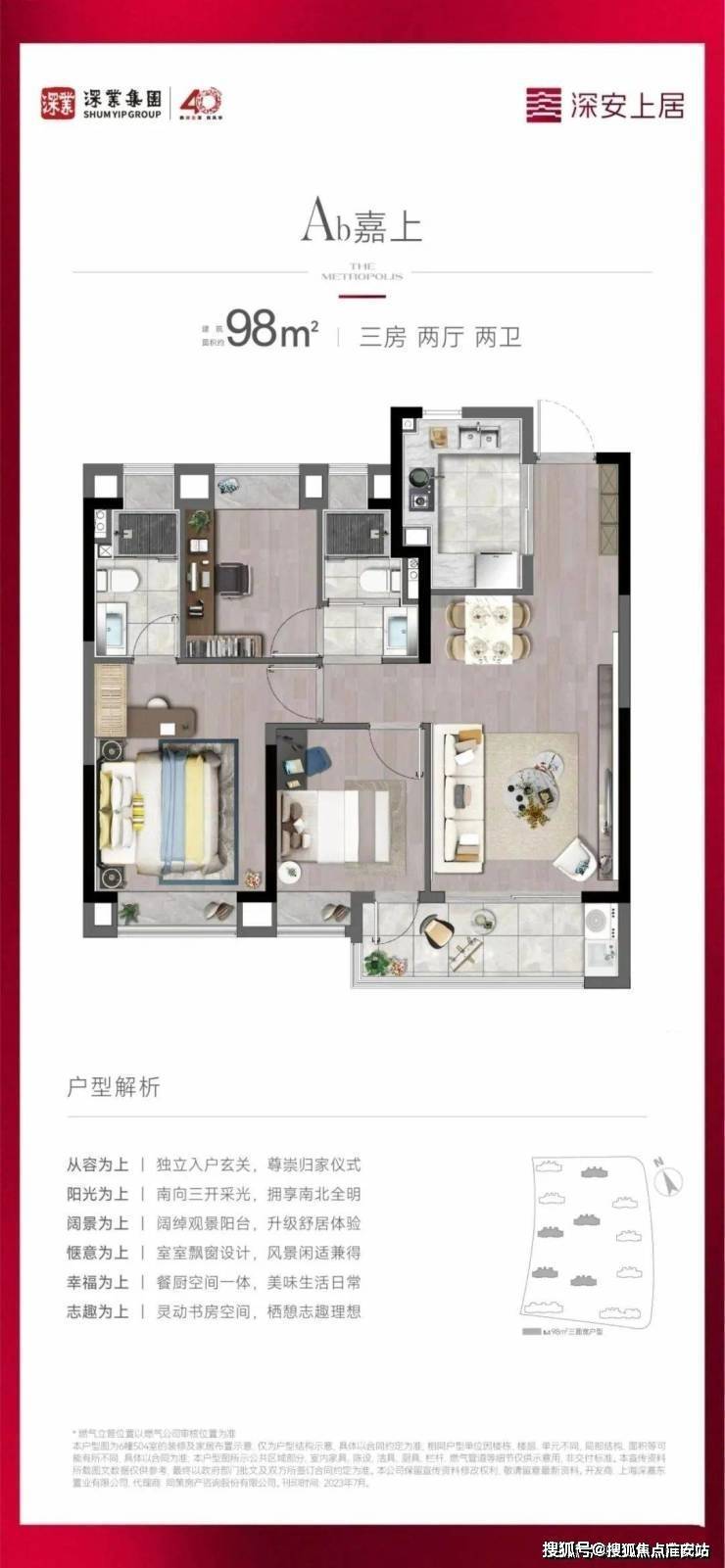离,采光面拉到极致的小3房。