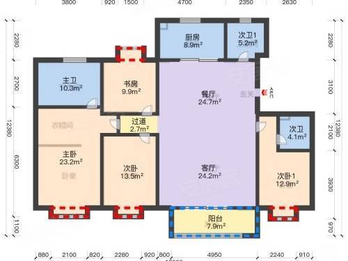主卧:超大套房,双衣帽间、双台盆、大飘窗