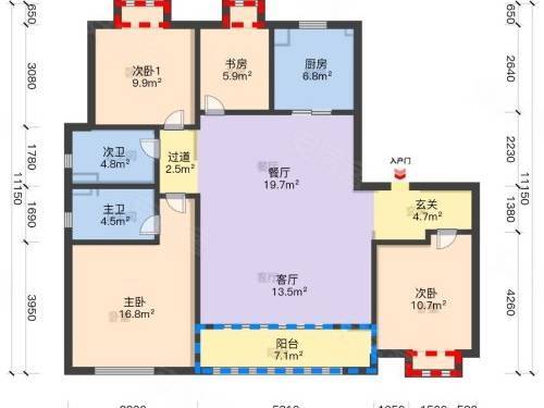 客厅:4.5 米面宽,落地窗,圆弧吊顶