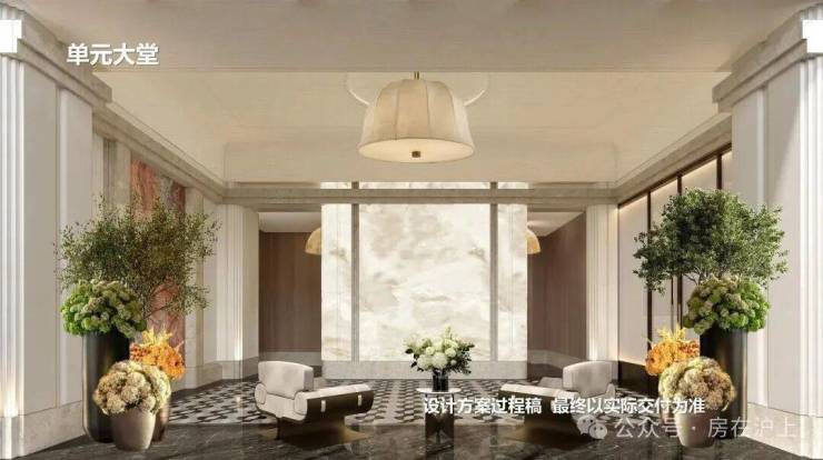 公区方面,从归家社区大堂、大堂序厅、以及入户单元大堂一路看过来,体现出一套脉络完整,层层递进的海派顶奢设计语言。