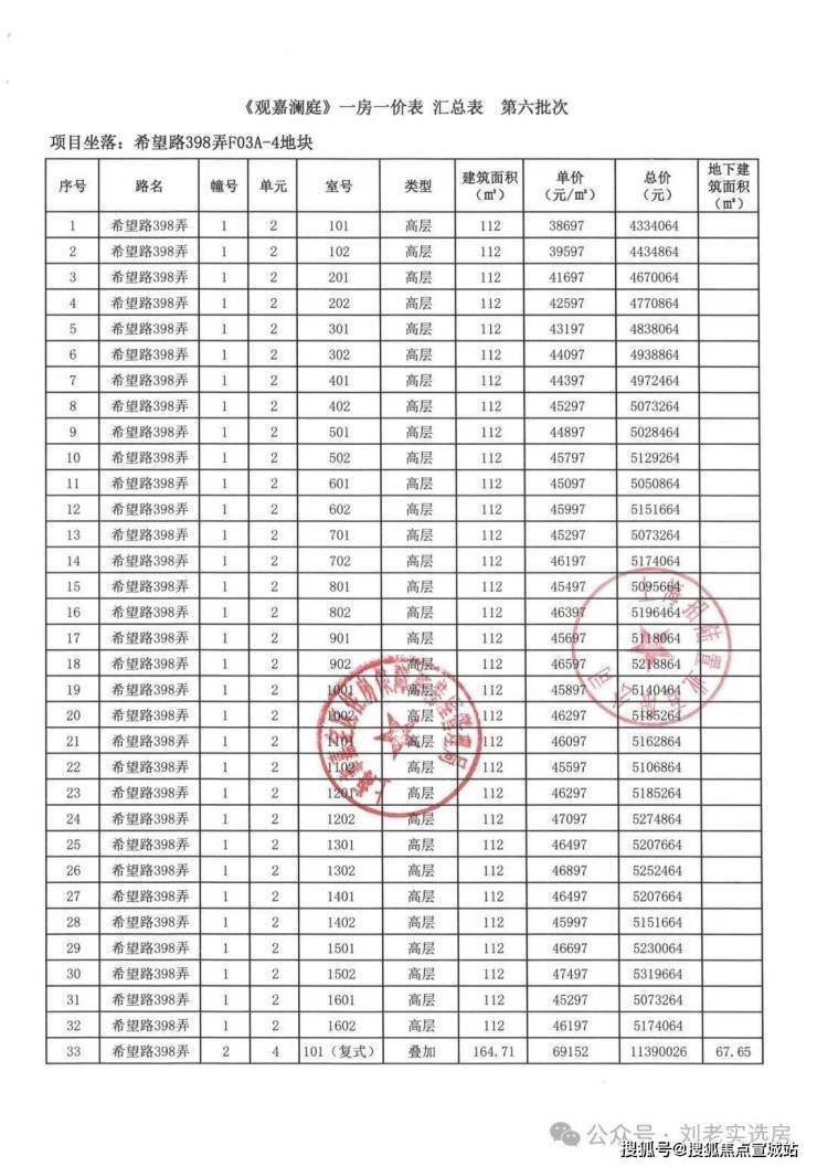 本批次一房一价表如下: