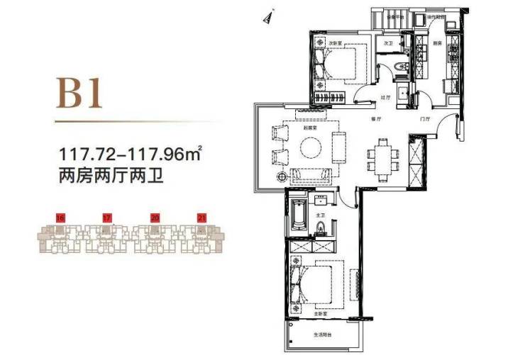 117m²双套房设计,每位家庭成员都有私享空间;