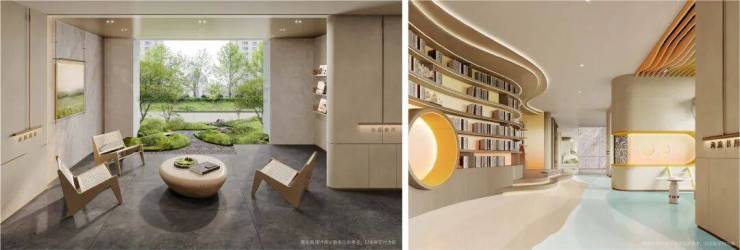 4、开放式架空层,全龄互动的多元空间:结合建筑、空间、自然环境关系,室内室外联动,呈现一个景观会客、海浪书屋、儿童休闲等多重功能的泛会所架空层,为全龄社交营造一个“有温度、有态度”的邻里空间。