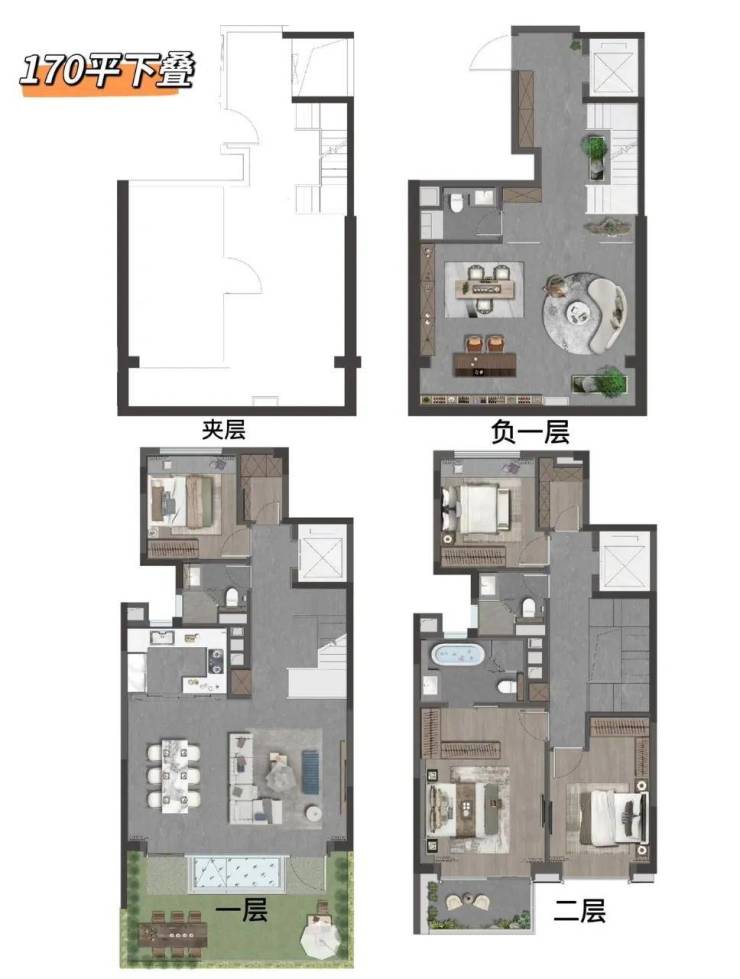 下叠户型的地下室挑高5.8米!上叠的地下室层高也达2.9米!5F还有专属屋面露台(48-60㎡)!配合16-18米超宽栋距(比常规叠墅宽40%)尺度感体验感拉满!