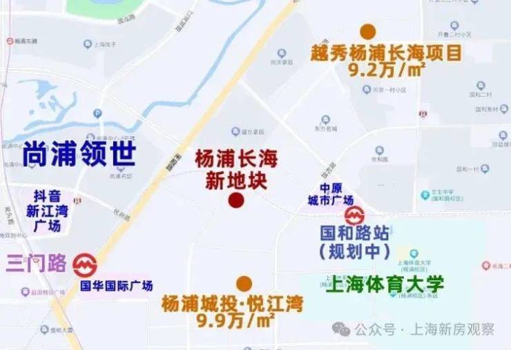 地块附近还有着杨浦第一高楼之称的“尚浦领世双子塔”,尚浦领世双子塔作为约90万方尚浦领世综合体的地标级建筑,目前一期工程已完美收官,二期预计2025年完工。