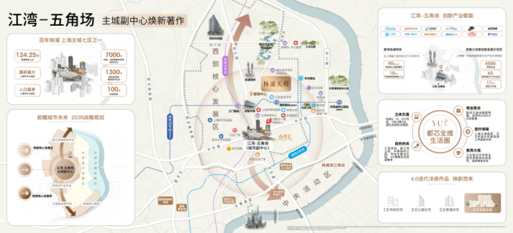商业方面:五角场环岛地块是上海十大商业中心之一,与徐家汇、淮海中路、中山公园等商业中心齐名。