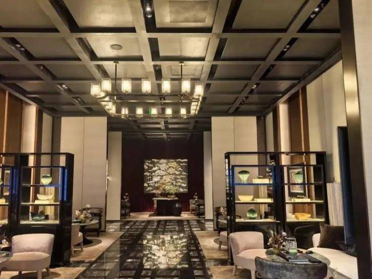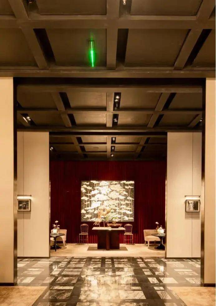 材料选用意大利石材,BVLGARI HOTEL大理石,✅康定壹拾玖售楼处电话:400-8787-740 ✅✅铝型材塑型红,四层金属网格墙面以及梧桐叶金属屏风等,打造独属老静安的记忆符号,高奢定制,市区豪宅调性拿捏!
