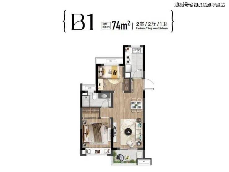 【LDK客餐厨一体】:南北通透 现代空间格局