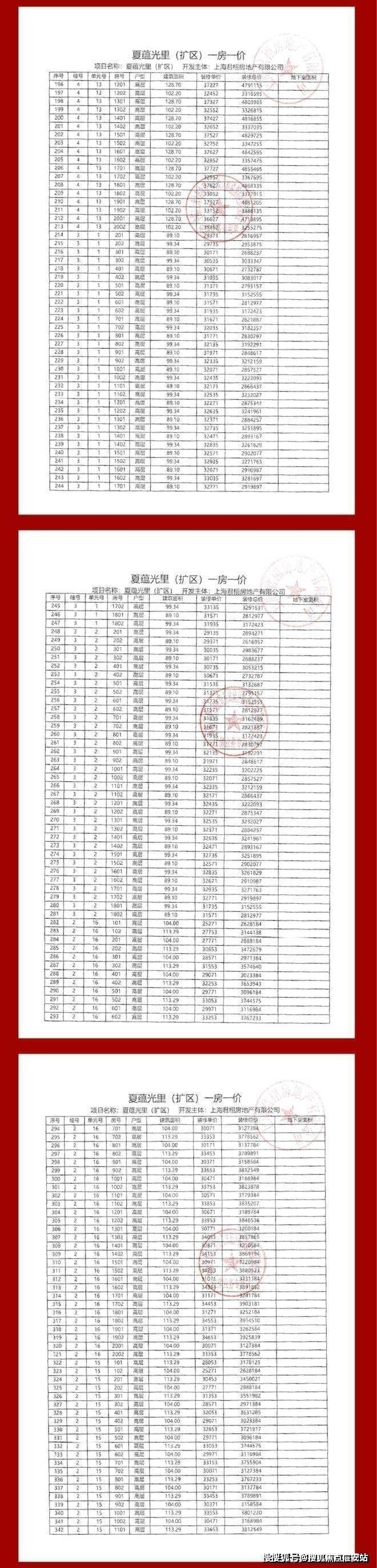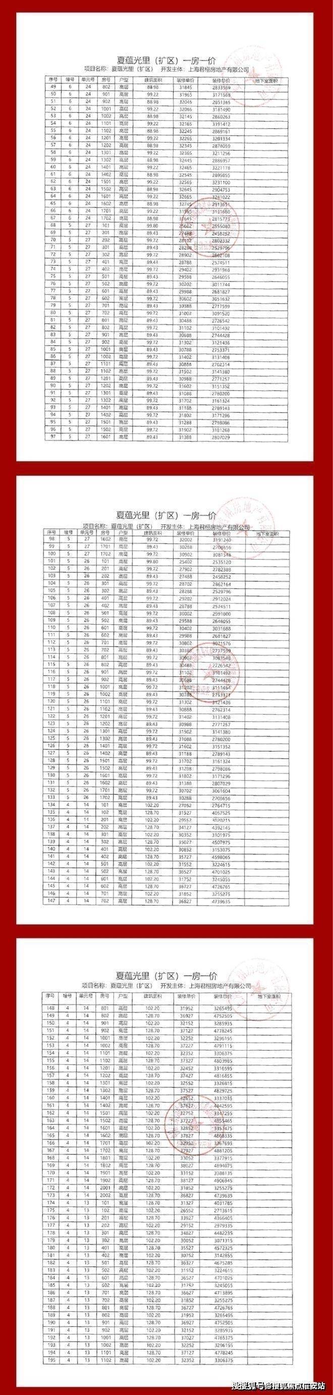 项目一房一价表