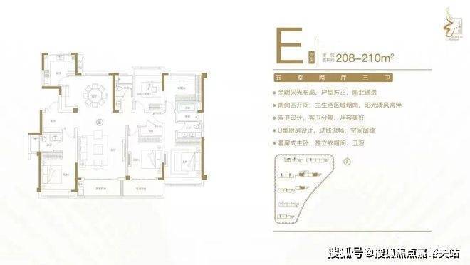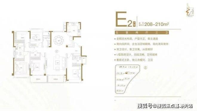 佳运汇龙府售楼处电话400-8855-420✨✨建面约208-210㎡五室两厅三卫户型特点:全明采光布局,户型方正,南北通透;南向四开间,主生活区域朝南,阳光清风常伴;双卫设计,客卫分离,从容美好;U型厨房设计,动线流畅,空间阔绰;套房式主卧,独立衣帽间、卫浴。佳运汇龙府售楼处电话400-8855-420✨✨