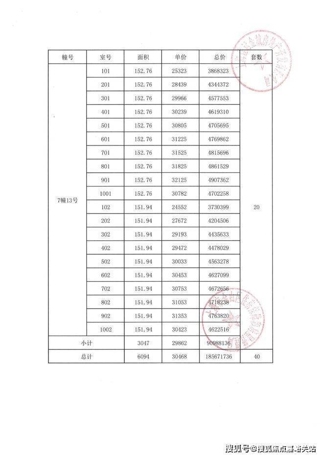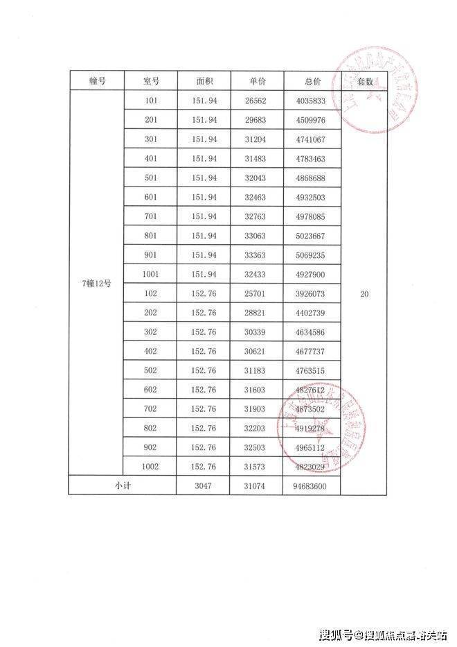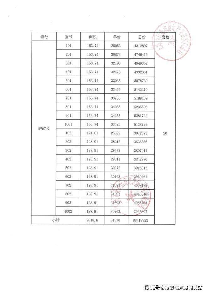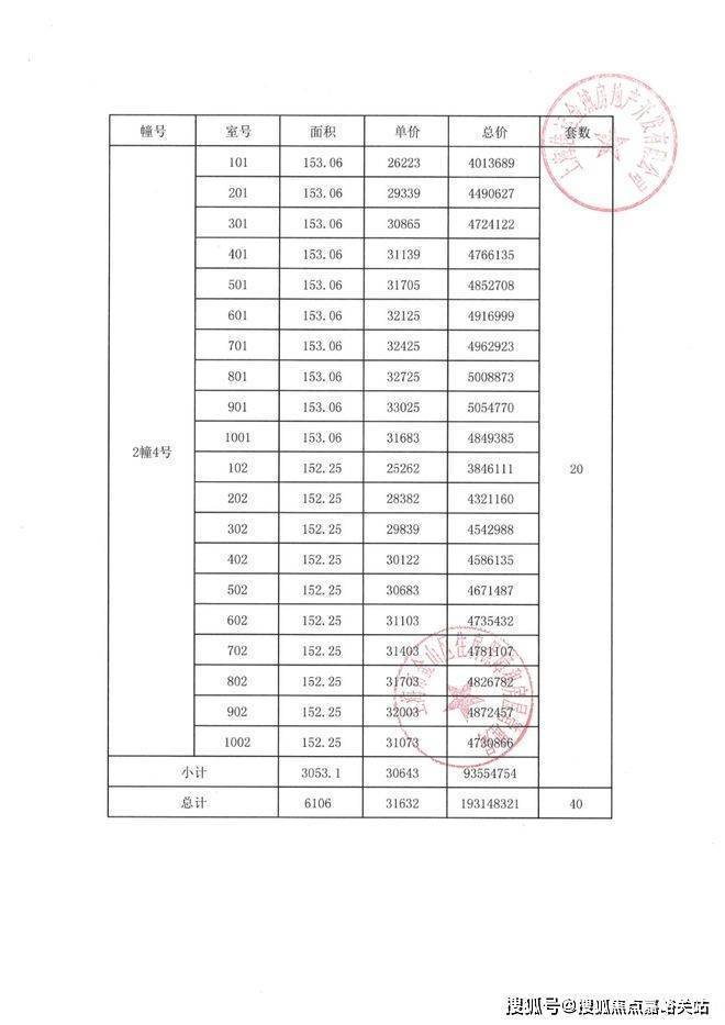 项目一房一价表