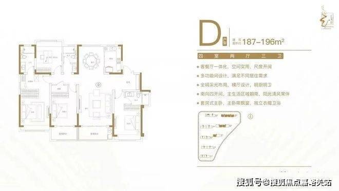 佳运汇龙府售楼处电话400-8855-420✨✨建面约187-196㎡四室两厅三卫户型特点:户型方正,南北通透,动静分区有序;双套房设计,卧室带飘窗,独立卫生间;客餐厅一体化,尺度开阔,佳运汇龙府售楼处电话400-8855-420✨✨全家共享;全明采光布局,告别暗房,明厨明卫;南向四开间,阳光清风常伴。佳运汇龙府售楼处电话400-8855-420✨✨