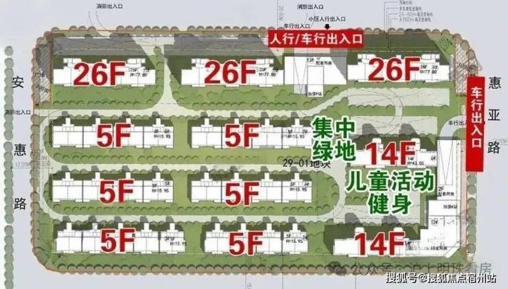 29-01地块原设计方案,将北面人行/车行的出入口向西侧的安惠路方向进行了调整,并疑似将北面的主入口调整到了惠亚路一侧。