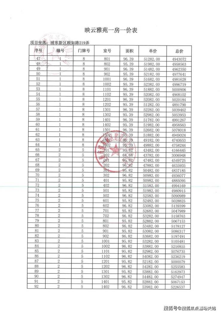 项目一房一价表▼