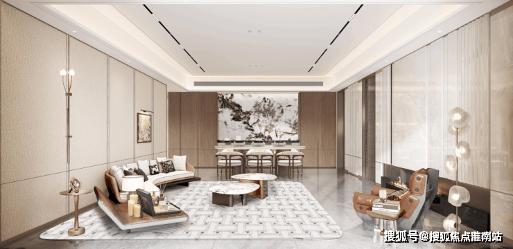 为匹配32席尊享居家场景,在户型设计之初,设计团队怀抱初心奔赴澳门,实地考察当地最新酒店户型设计理念,合理规划约200㎡功能布局,将客厅打造成近约40㎡方厅,旨为菁英圈层社交。