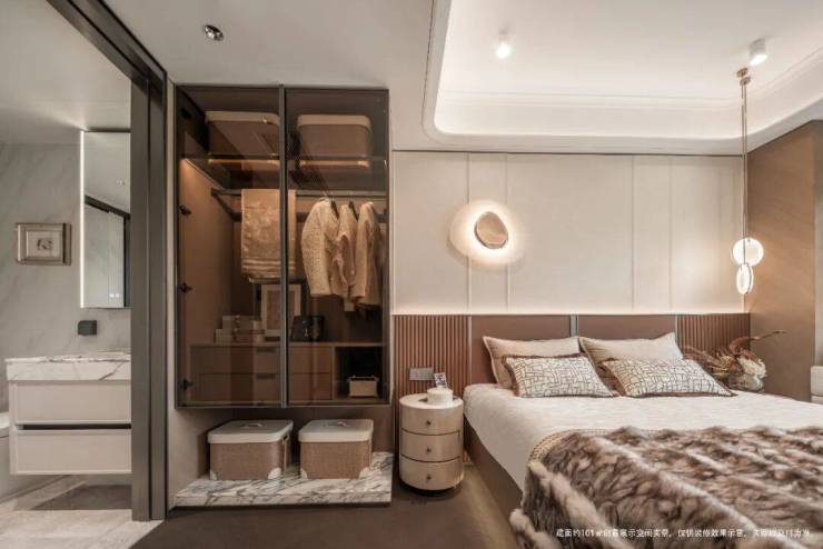 经典轻奢主卧套房,配备独立衣帽间,尽享高品质的私密尊崇;