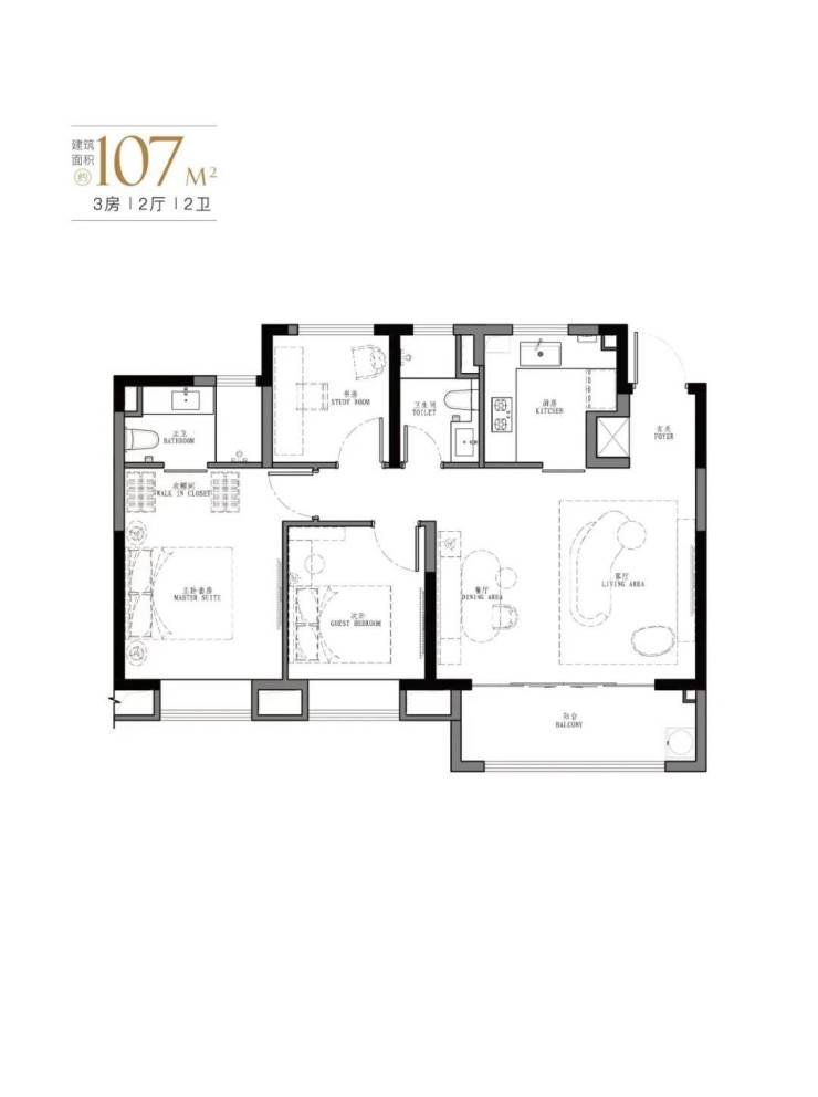 产品:103㎡、107㎡的三房两厅两卫及123㎡、129㎡的四房两厅两卫。
