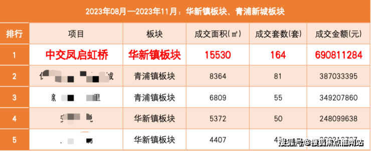 作为热销10亿+的项目,继首开之后,中交凤启虹桥再次荣登8-11月华新、青浦镇板块在售新盘中, 成交套数、成交面积、成交金额三大榜首!且远超第二名成交2倍之多!名副其实的实力选手!