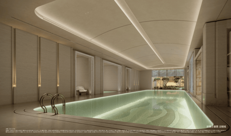 约1200㎡私享会所,内配沃特罗伦主题健身房、双面采光恒温泳池,连接双下沉式庭院,与九球室、壁球室等多元空间。