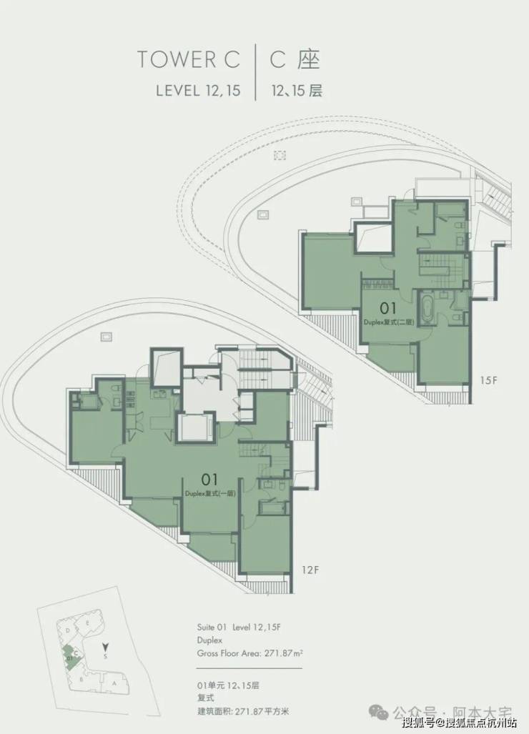 建筑面积 :271.66平米双露台顶层复式(私享独立电梯厅)