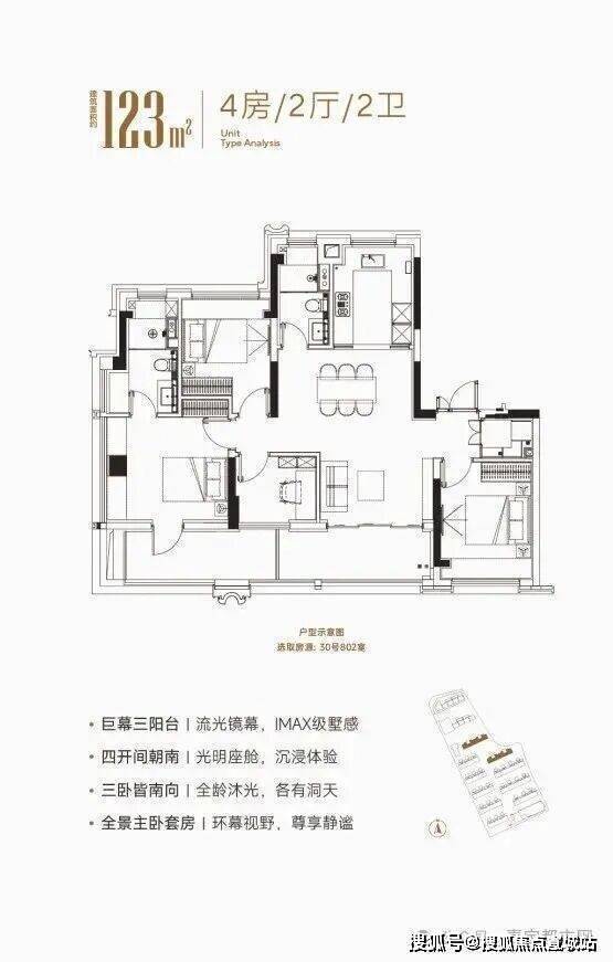 项目建面约123㎡户型则是区域内少有同面积段宽厅4开间朝南4房南北通透户型,附赠建面高达约17.6㎡,无论是在使用功能上和尺度上,都远超同面积段其他户型。另外该户型的舒适度把控与收纳细节做得很到位,比如主卧带独立衣帽间+多飘窗套房设计,让男女主人有足够的空间摆放私密物品,入户独立玄关+800库设计让业主进出的随手物品有了好的位置。