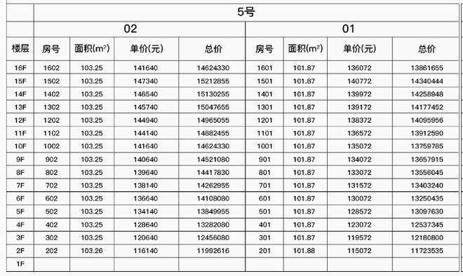 最新一房一价表: