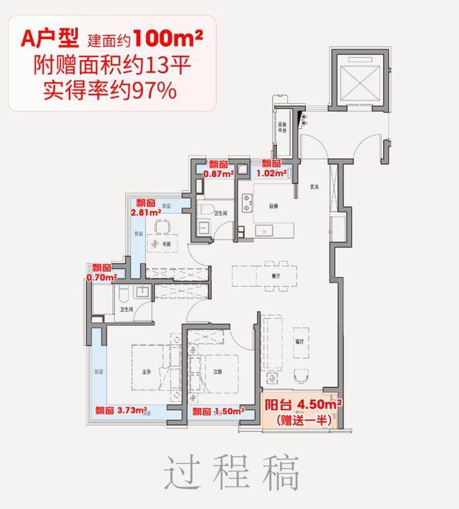 1、建面约99-102平3房中间套,实得率约91%,性价比之王!