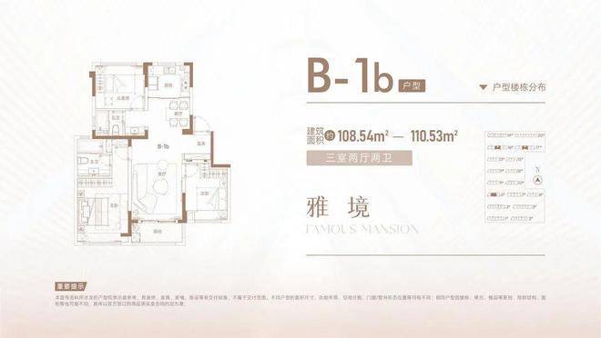 约106-110平方米的大三房两厅两卫:相比入门级三房,这个户型空间尺度更加阔绰,尤其是客厅和主卧的空间感更强,适合对居住舒适度有更高要求的改善型家庭。
