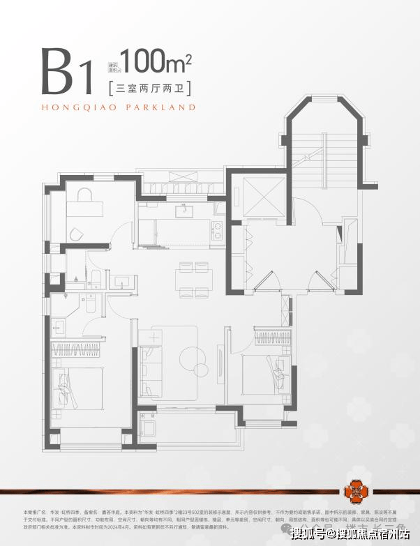 建面约100m²三房两厅两卫,飞机户型,空间布局细节拉满!为业主带来越级的宜居体验,无论是三口之家还是三代同堂,都可以在这里找到属于自己的幸福空间!
