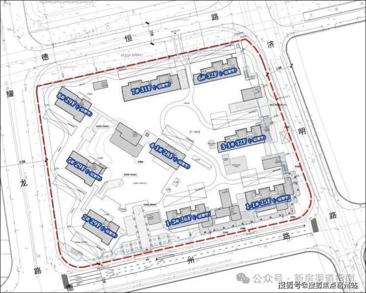 根据项目规划设计方案,07-01地块拟建9幢超高层住宅,其中7幢百米高层住宅(28-32层)、1幢83米高住宅(25层)和1幢86米高住宅(26层),若干社区配套用房以及部分商业设施,共计规划约794户。建面120㎡以下中小套型占比要求不低于40%。