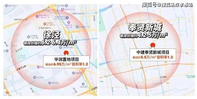 比如青浦徐泾容积率1.2的宅地和奉贤新城容积率1.2的宅地,比起板块其他新房,联动价至少高5000元/㎡!