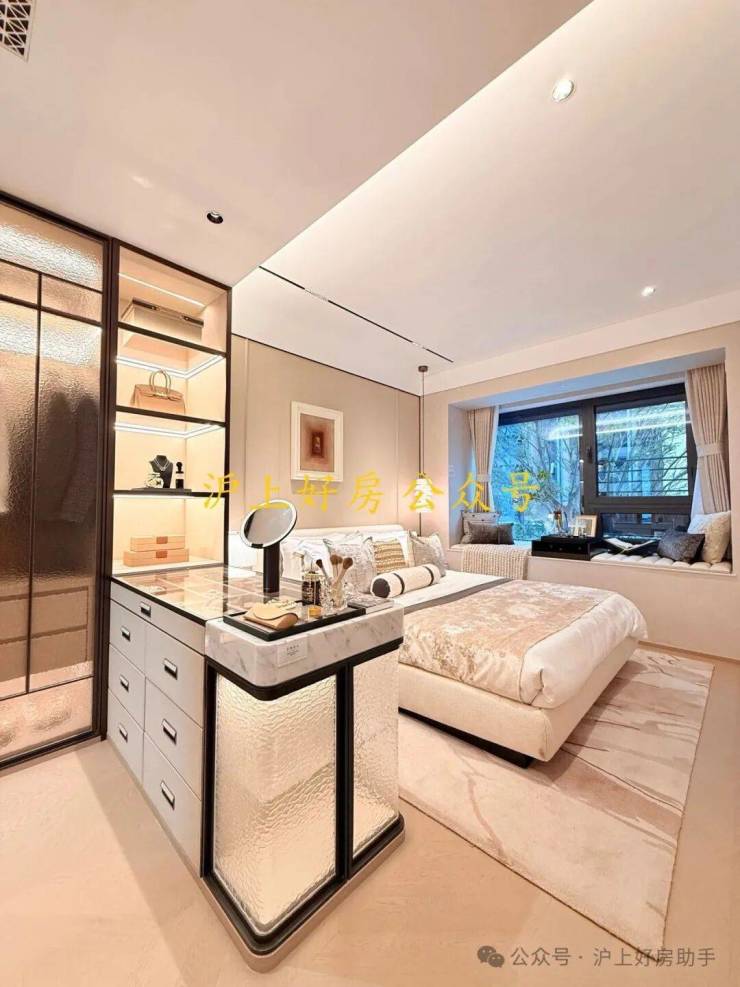 主卧拥有270度环幕飘窗,视野和采光优越,配备了高奢卫生间,空间感、尊崇感拉到顶格。