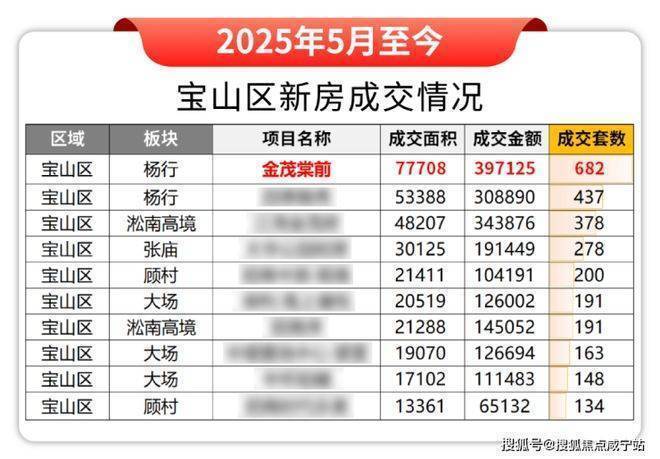 2025年5月至今,金茂棠前更是宝山区新房成交“三冠王”!成交金额、成交套数、成交面积并列第一!