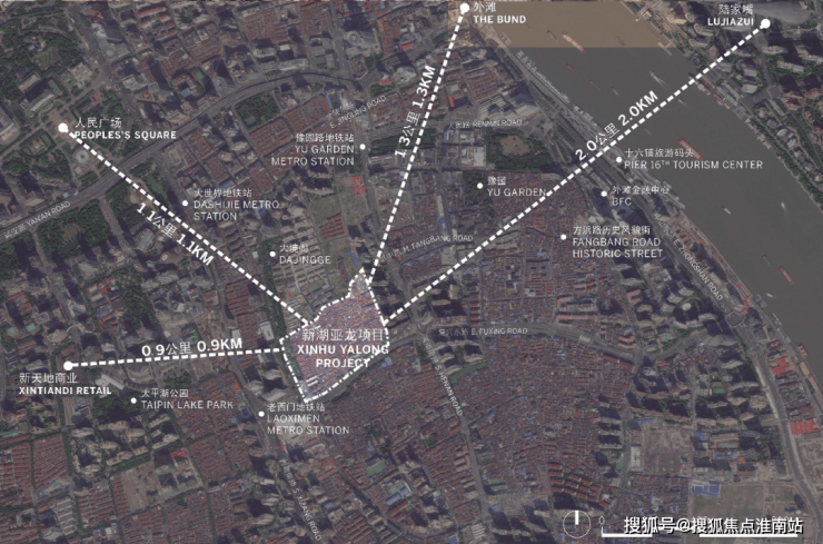 距新天地直线距离约900m,陆家嘴直线距离约2km,外滩直线距离约1.3km。